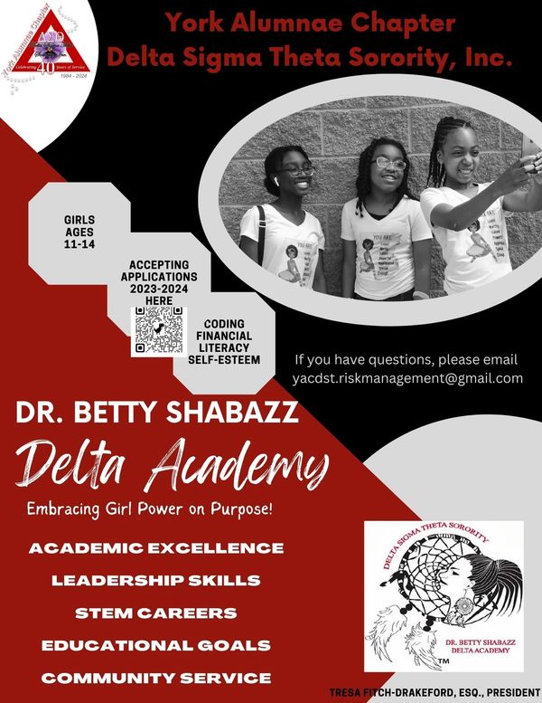 This website is the sole property and responsibility of the York Alumnae Chapter of Delta Sigma Theta Sorority, Inc. Copyright © 2019 York Alumnae Chapter Delta Sigma Theta Sorority, Inc. - All Rights Reserved.